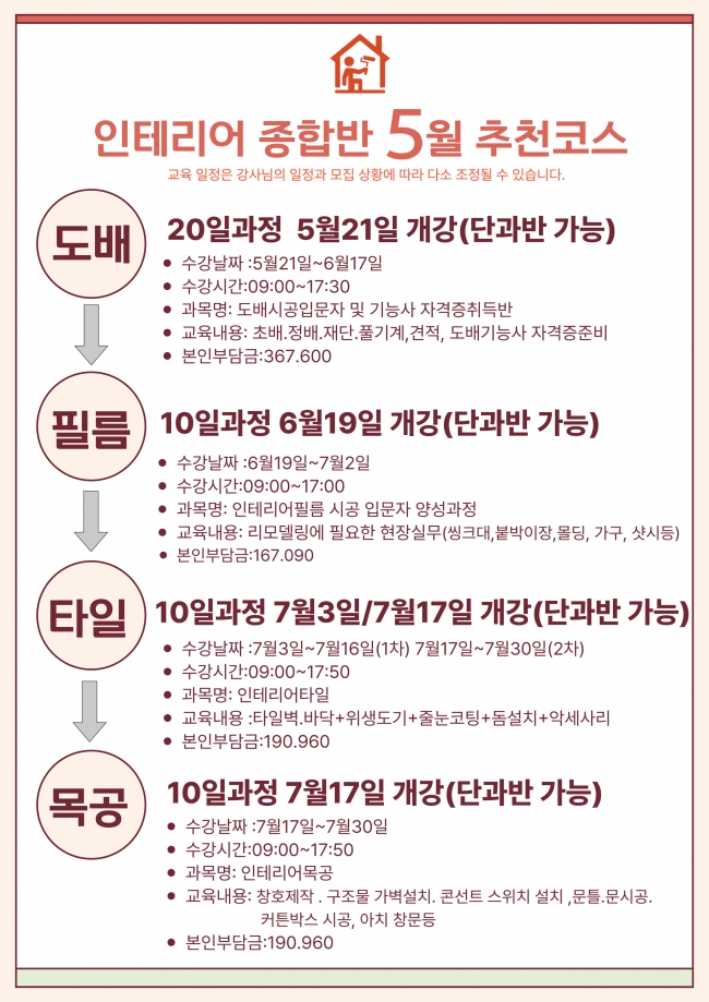 5월 추천 인테리어종합 코스 (단과반도 가능)