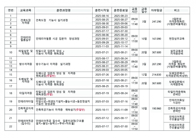 7월~9월 교육일정 안내