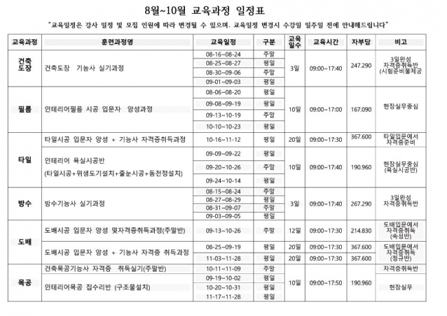7월~9월 교육일정표 업데이트 합니다.